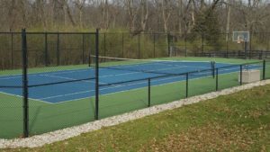 Safe cleaning on Tennis Courts in Nashville TN. Our detergent based method allows us to use a lower pressure, higher flow system to safely wash the surface of tennis courts.